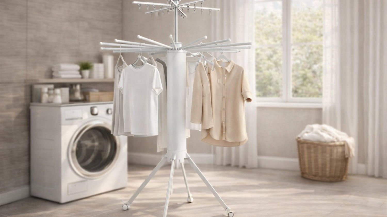 Foldable 360° Rotating Clothes Drying Stand | Aluminum Tripod Laundry Rack